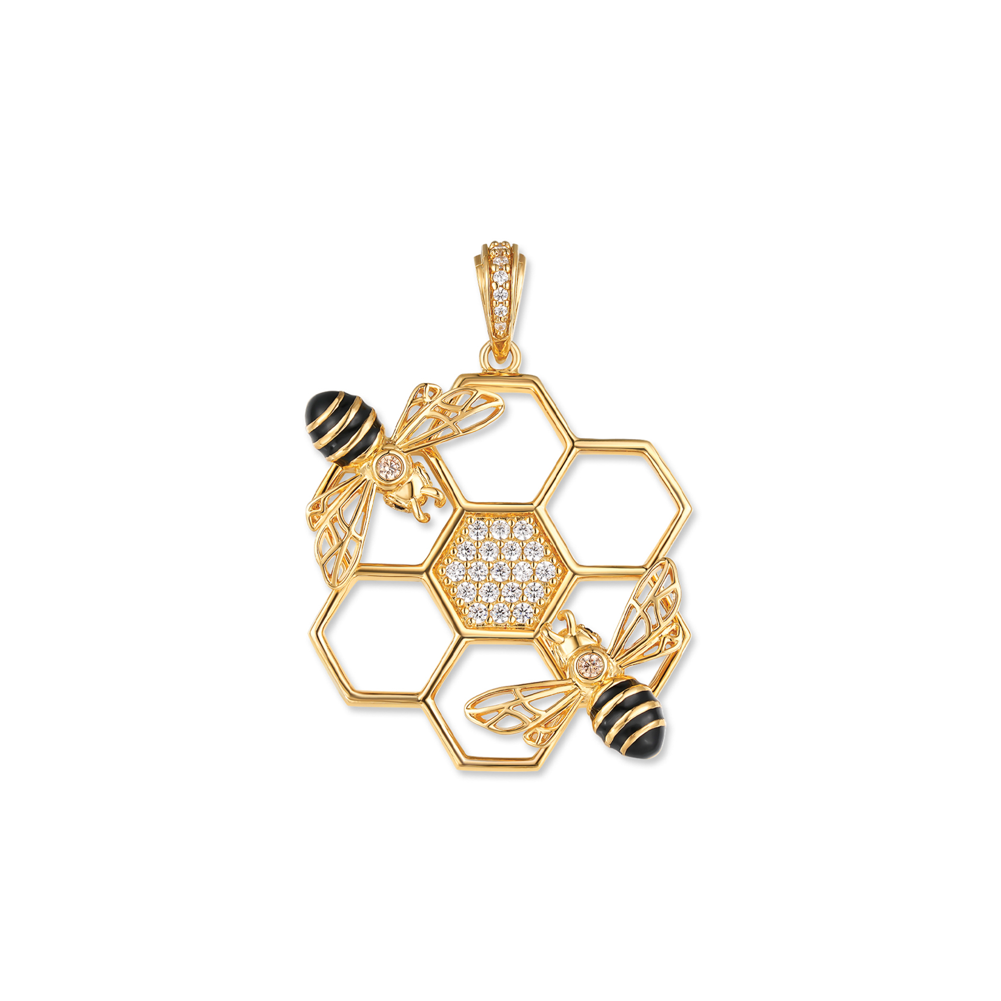 Anhänger Bienenwabe Bommel Zirkonia Silber vergoldet